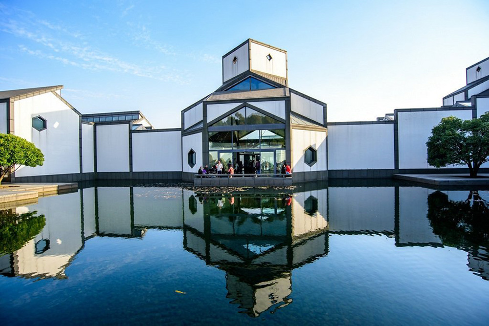 館內走廊的屋頂有點像蘇州傳統的坡頂,幾乎都是三角或菱形對稱,鏤空設計演變成一種新的幾何效果,使自然光進入活動區域和博物館的展區,地上光影斑駁,頓生恬靜的舒適感。來回穿梭時,通透的玻璃窗層層疊疊,點綴着夏天的藤系植物,望向窗外,看到依依翠竹和中庭花園,使人不由慢下了腳步,享受片刻寧靜。除了建築,蘇州博物館的藏品布置也透出江南之韻,更有一件鎮館之寶──五代秘色蓮花瓷碗,溫潤晶瑩,捩翠融青,細膩的瓷器將中國的傳統審美表現得淋漓盡致。