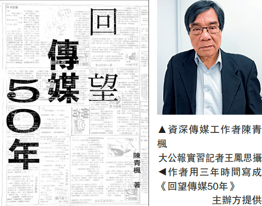 【大公報訊】實習記者王鳳思報道:媒體生態在這十年間不斷轉變,七八十年代是紙媒的黃金歲月,當時資訊並不像今日般流通,市民喜歡看報紙。陳青楓在報業最輝煌的年代入行,見證着香港傳媒的興衰,從他的著作《回望傳媒50年》一書中,可以讓讀者感受到香港傳媒的變遷。