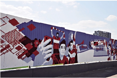 圖:斯巴達克球場外關於世界杯的壁畫 /大公報特派記者何嘉軒攝