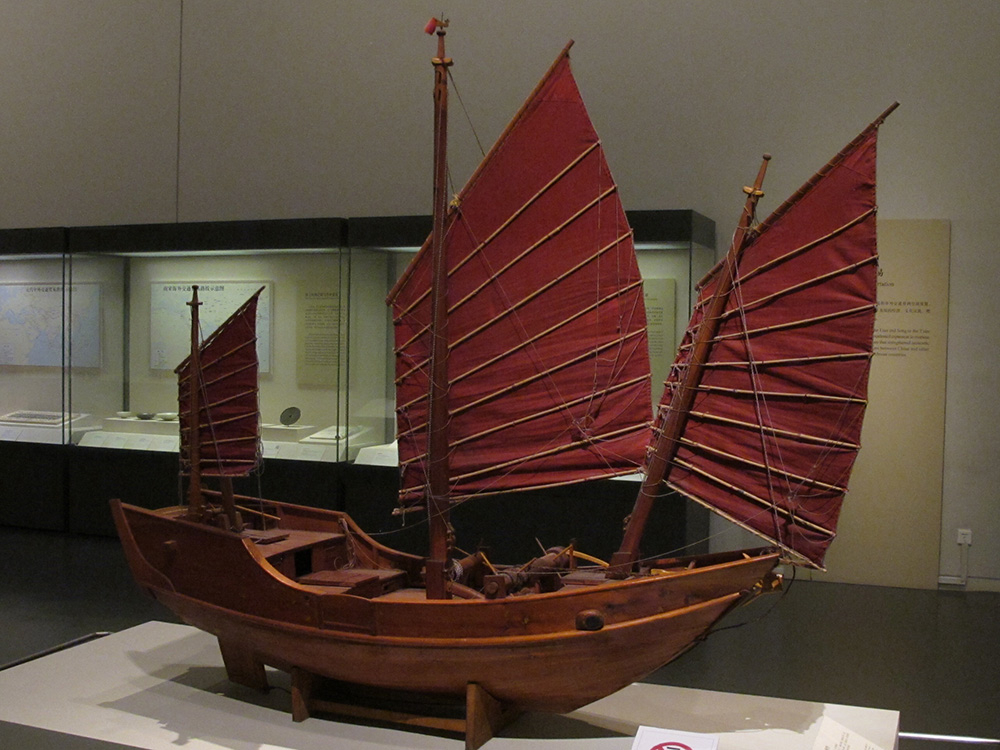 圖:中國國家博物館展出,根據福建泉州後渚港出土文物復原的宋代中型海外貿易船,排水量三百七十噸