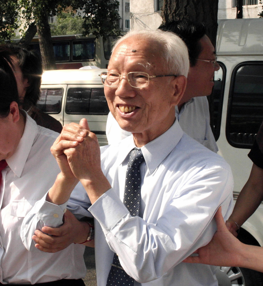 圖:2007年田家炳訪吉林省長春市第五中學,與學生們討論為人處世之道,指「中國的希望在教育」