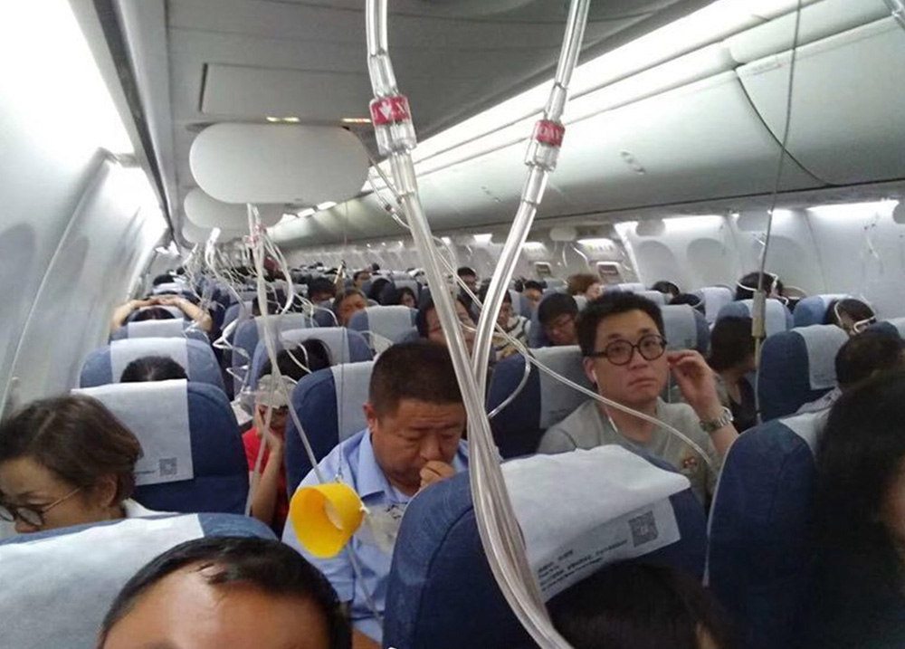 圖:國航客機在飛行途中疑因機組誤操作導致機艙釋壓,氧氣面罩脫落/網絡圖片