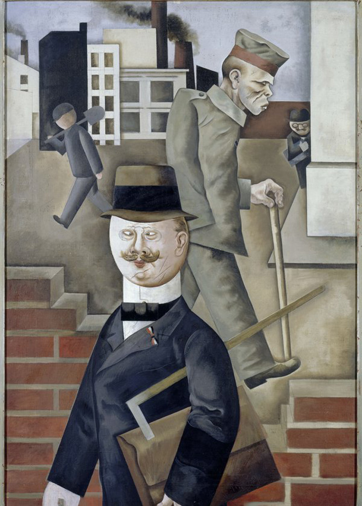 耗時四年、戰火燃遍全球的第一次世界大戰,導致一千七百萬人喪生,將歐洲既有的政治、經濟和社會秩序幾乎盡數毀壞。在這樣倏忽而來的新舊交替轉折時期,藝術家恐怕難以關起門來不問世事,藝術創作必然地回應世事,並反映社會個體的心聲。今次展出的作品儘管所屬風格與流派互不相同,但總括而言不外表現出三種趨向:一是「回望」,因當下的挫敗及荒誕而格外懷念「老好日子」(good old days),並以創作表達對於古典主義和自然主義風格的仰慕,頗有一種「復得返自然」的衝動;另外一個趨向是「展望」,既然當下不堪,不如向前看,藉由筆和畫布恣意暢想遠方的烏托邦。至於戰敗國德國的藝術家,如George Grosz等人,則顯然沒那麼率性放鬆,他們將重點落在「當下」,或以諷刺或以寫實的筆法,反思戰後士兵遭遇的不公平對待,反思資產階級的貪婪,以及社會貧富懸殊種種隱患。