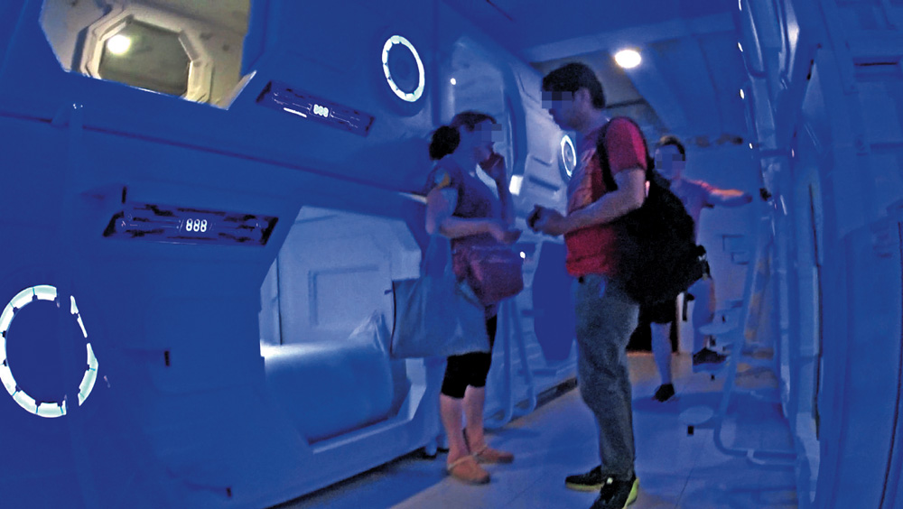 圖:業主陳小姐(化名)(左)帶記者「睇艙」,指逾半太空艙已租出