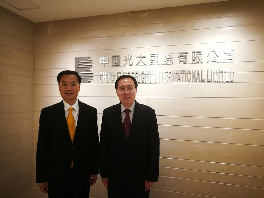 圖:光大國際行政總裁王天義(左)與主席蔡允革 /大公報記者王嘉傑攝