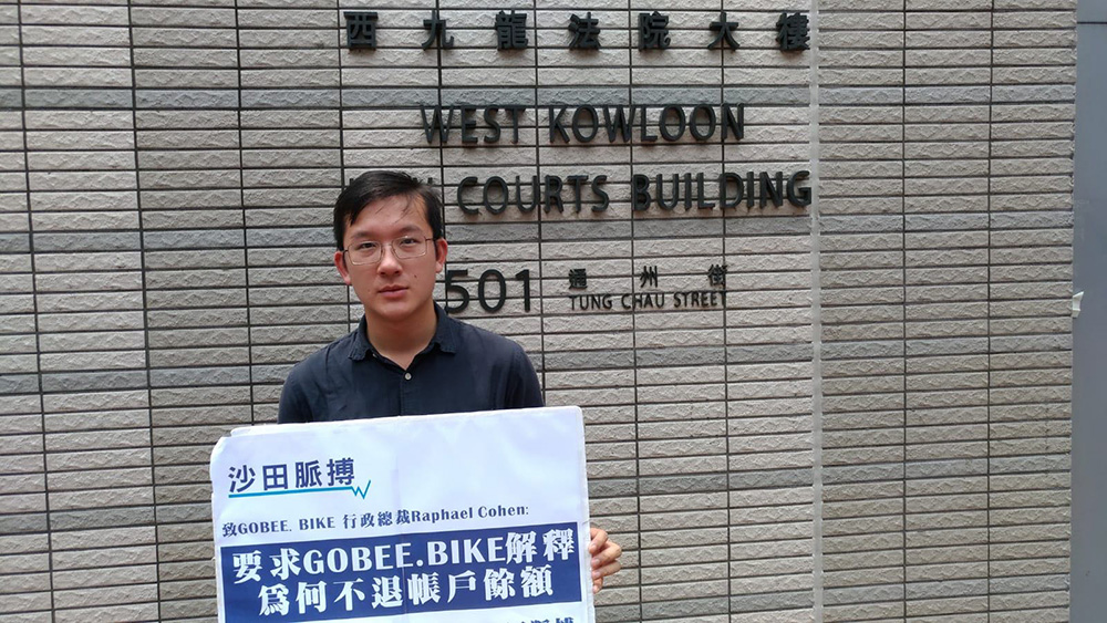 圖:沙田脈搏召集人林宇星入稟小額錢債審裁處,成功向gobee.bike索償