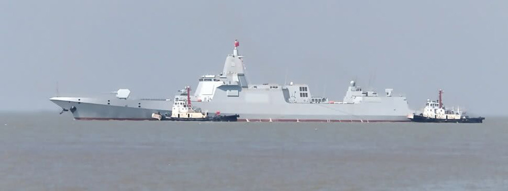 首艘055驅逐艦於2017年6月28日在上海江南造船廠下水,經過一年多的舾裝、調試、繫泊航行試驗後,終於出海試航。