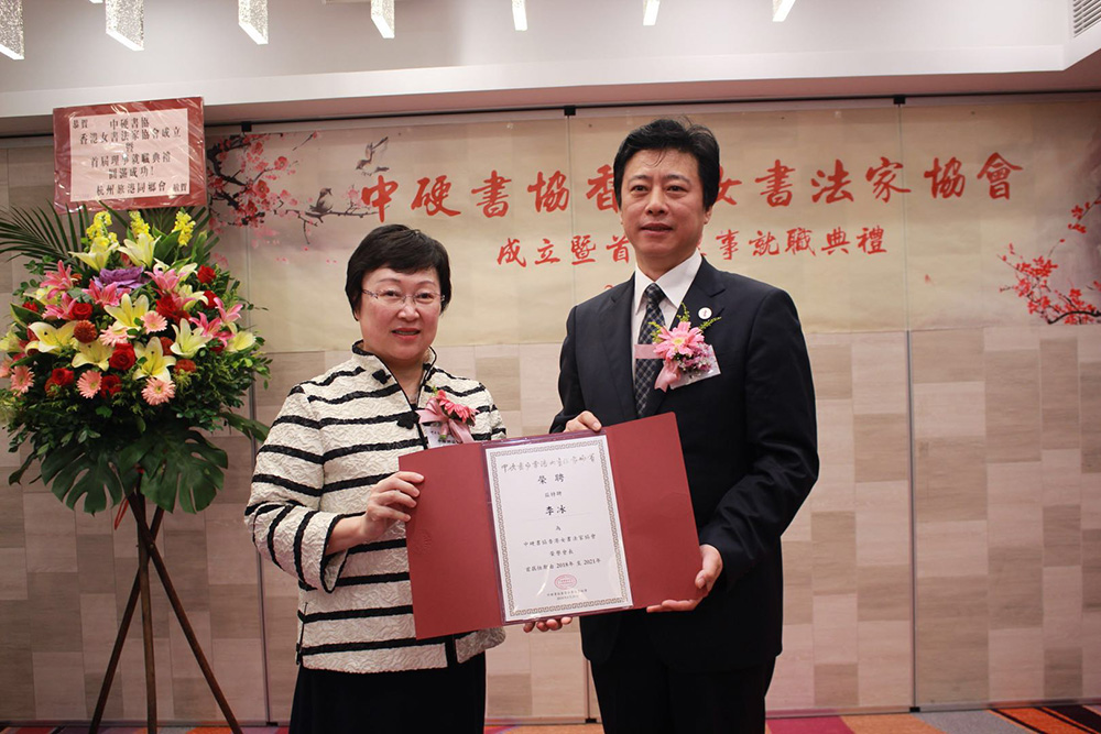 中硬書協香港女書法家協會已於今年一月七日註冊成立,八月二十九日的儀式上公布了協會架構,張華慶為中硬書協香港女書法家協會永遠榮譽會長,李冰為榮譽會長,婁耀敏為執行理事會會長,還有名譽會長、藝術顧問等名單。