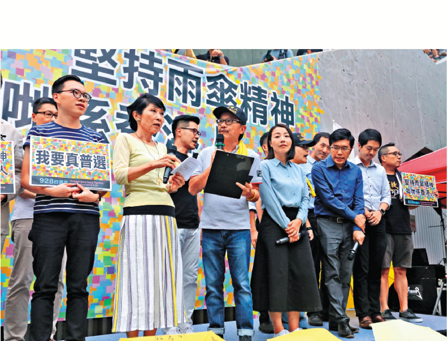 亂港派昨日在金鐘政府總部外,舉行所謂的「紀念」違法「佔中」四周年集會。儘管違法「佔中」搞手戴耀廷因忙於赴海外尋求境外反華勢力支持而缺席,但亂港派仍不忘在香港竭力扶植亂港勢力。大公報早前的調查報道亦揭發,違法「佔中」一直暗中勾結境外反華勢力、培育「港獨」分子。