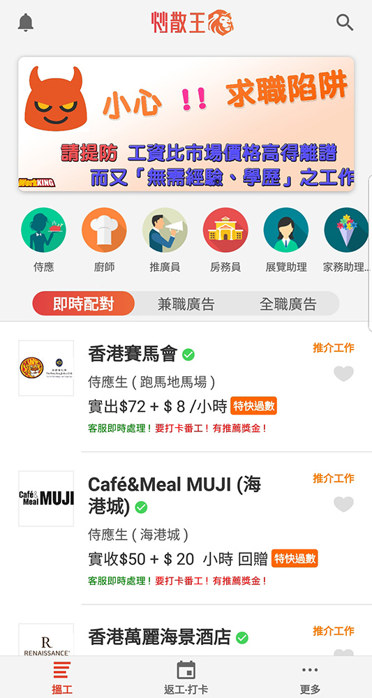 圖:「炒散王」作為中介平台,會為用戶及餐飲集團提供職位配對