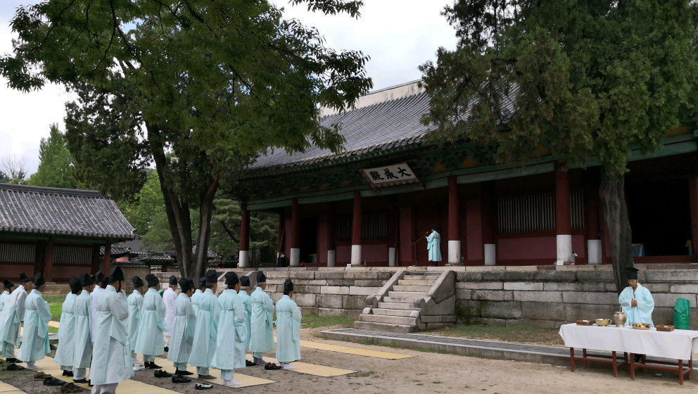 圖:成均館大學文廟大成殿前的祭孔典禮
