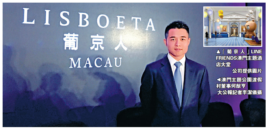 澳博(00880)聯席主席兼執行董事梁安琪私人有份投資的路氹澳門主題公園渡假村,正式命名為「葡京人」(Lisboeta),預期在2020年開幕,包括引入LINE FRIENDS主題酒店。負責今次項目策劃的澳門主題公園渡假村董事何猷亨直言,該項目是否有機會注入澳博「是敏感話題,無謂多講」。/大公報記者 李潔儀澳門報道