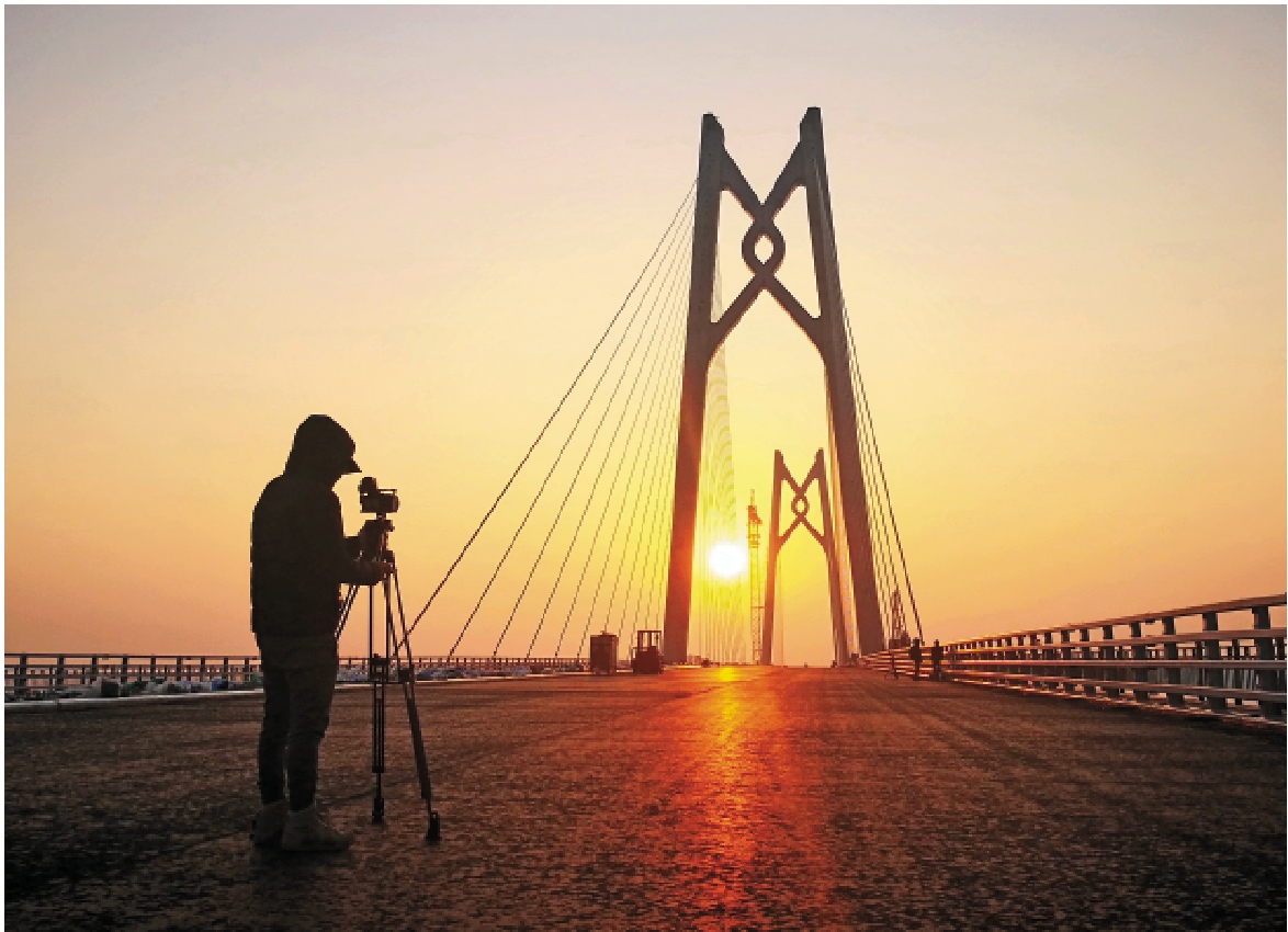 進入青州航道橋附近,感覺到這個「中國結」索塔比之前兩大主橋橋塔更高。工作人員說,兩座「中國結」索塔是港珠澳大橋上最高的塔,高達163米。兼具傳統韻味和現代氣息的「中國結」鑲嵌在索塔上部,巧妙的結構設計、優美的建築造型,實現了功能與景觀的完美統一。