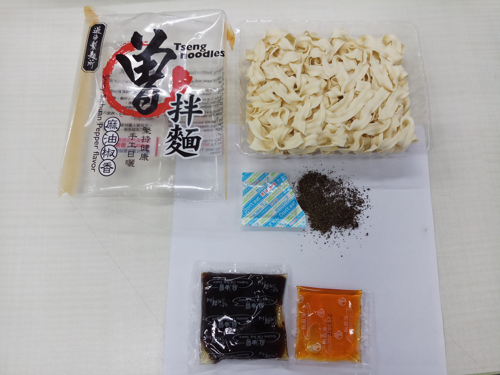 男戶主及後細看該拌麵,發現乾燥劑包裝酷似即食麵調味粉,包裝「不可食用」的字眼不夠明顯,紅色中文字夾雜粉藍色日文字和英文字,容易令人眼花,且外傭和長者未必懂看。加上曾拌麵標榜麻椒味,由鐵粉炭粉製成的乾燥劑是黑色粉粒,更易令人誤吃。