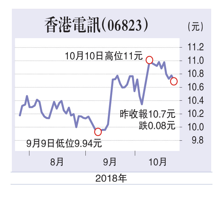 近期市況波動下,較具防守性及高息回報的商業信託更為吸引,因派息比率必須佔可分派收入不少於九成。集團貴為行業龍頭,預計受惠電訊服務營辦商環境改善及5G來臨的機遇,建議於約10.50元買入,目標價為12.10元,止蝕價為本年低位9.36元。(筆者為持牌人士,並沒持有上述股份)