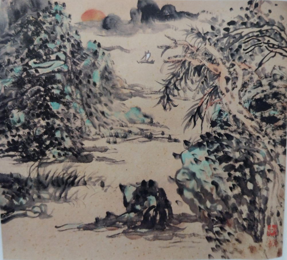 圖:李白詩國畫:「兩岸青山相對出,孤帆一片日邊來。」