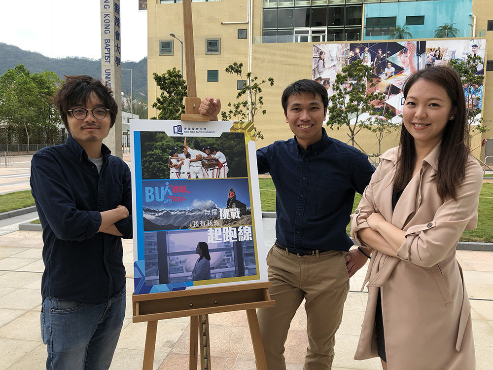 圖:左起:陳志發、張偉賢和雷雅萍,齊齊成為浸大短片「我有我的起跑線」主角\大公報記者 呂少群攝