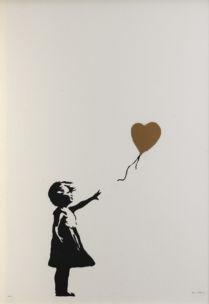 圖:班克斯作品《手持氣球的女孩,藝術家版金色》\主辦方供圖