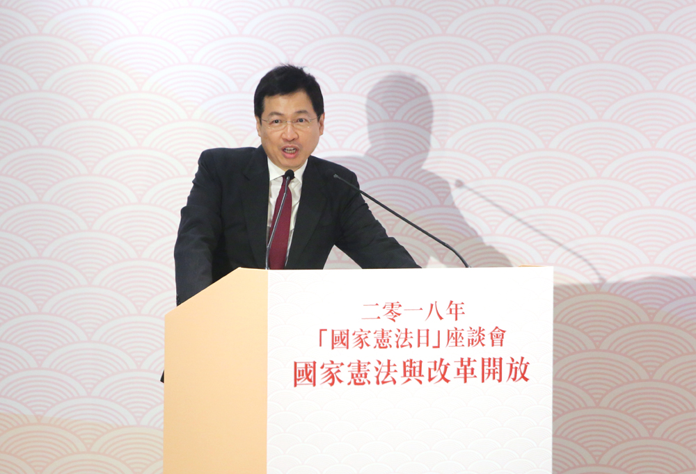 莫樹聯致辭時首先提到兩條看似互不兼容的憲法與基本法條文:憲法第1條規定,社會主義制度是中華人民共和國的根本制度;基本法第5條規定,香港特區不實行社會主義制度和政策。
