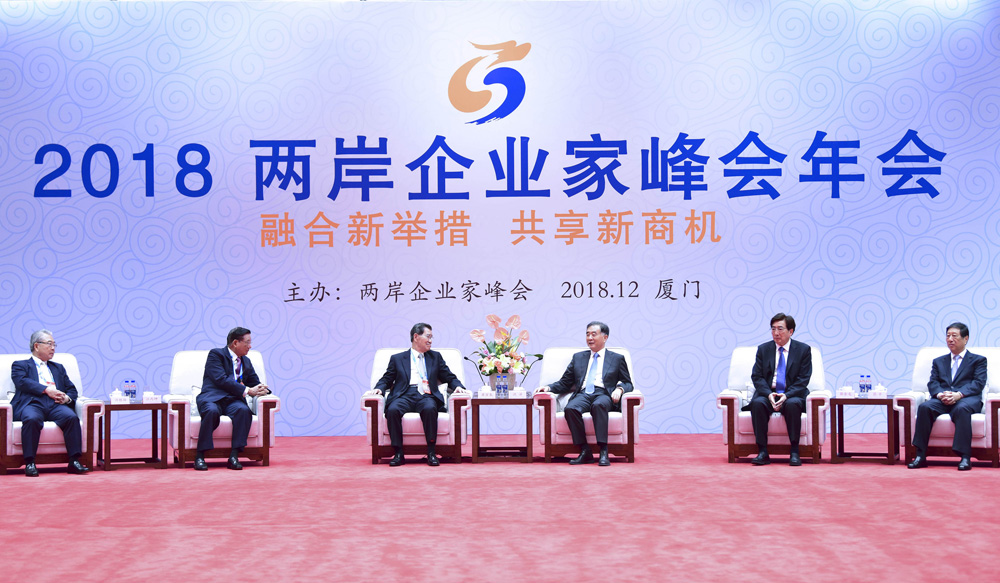 汪洋指出,今年以來,世界局勢複雜多變,保護主義、單邊主義抬頭,世界經濟發展不確定不穩定因素增多,但兩岸貿易額逆勢大幅增長,充分說明兩岸經濟合作具有堅實基礎和強大動力,能夠經受住國際風雲變幻的考驗。大陸和台灣在資金、市場、技術、人才等方面各有所長,優勢互補的大格局沒有改變。大陸經濟已由高速增長階段轉向高質量發展階段,產業結構和消費結構加快升級,對台灣優質產品和優質服務的需求與日俱增。只要秉持「兩岸一家親」理念,充分發揮企業界的作用,加強開放合作,不用捨近求遠,就能夠實現共同發展。