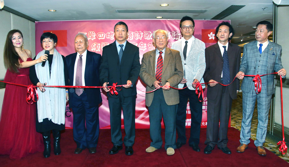圖:(左第二人起)何佳霖、謝冕、朱挺、林廣兆、向雪懷、商震、何亮亮為頒獎禮剪綵\主辦方提供