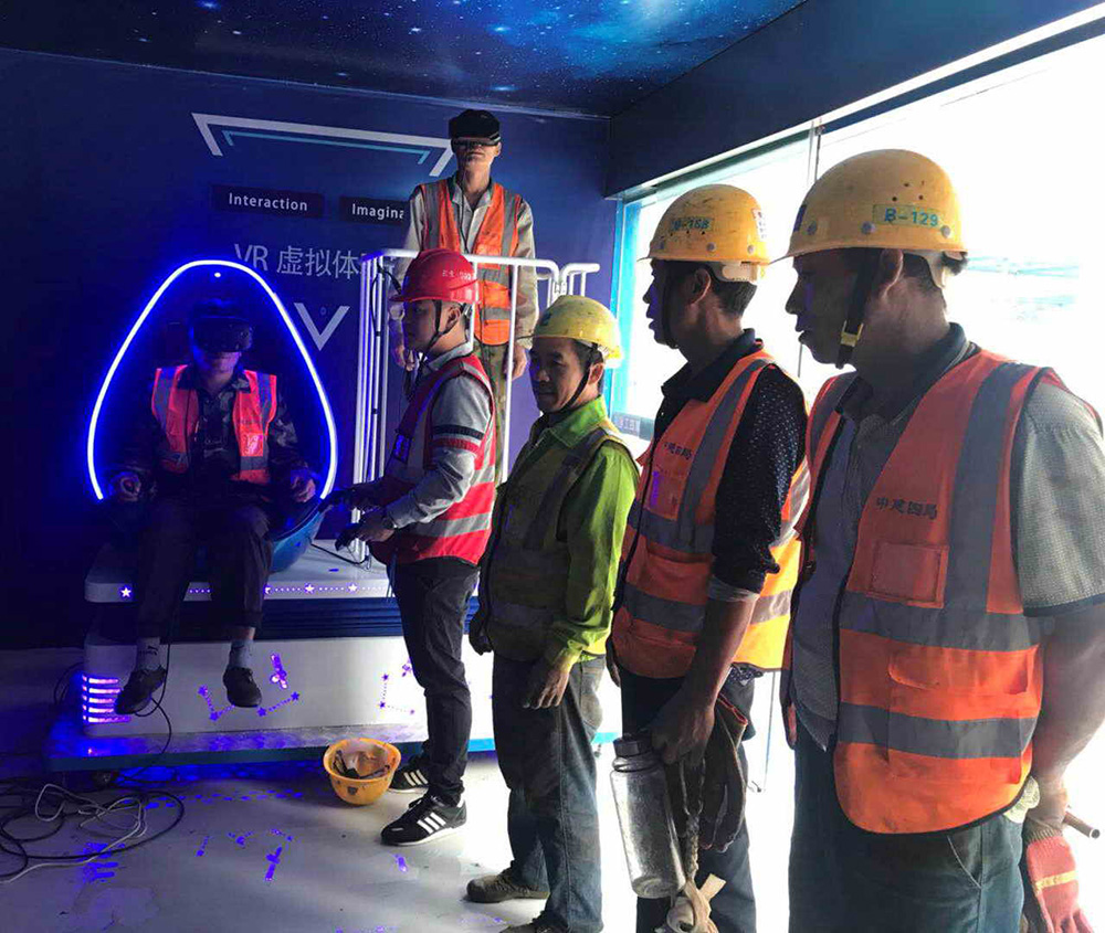 圖:建築工人在工地VR安全體驗館\大公報記者郭若溪攝