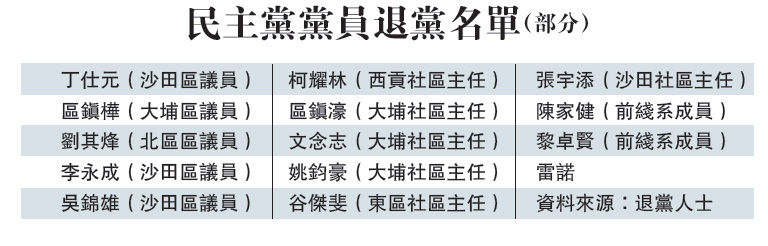 【大公報訊】記者冼國強報道:民主黨自創黨以來,不斷有內部矛盾爆發,經過多次黨爭及退黨潮。2010年,由范國威率領的「少壯派」不滿民主黨政改立場,率領其餘29人退黨,宣布另起爐灶成立「新民主同盟」。2015年4月,身為民主黨創黨成員的黃成智發起聯署,呼籲反對派議員接受政改方案,最終被民主黨革除黨籍。