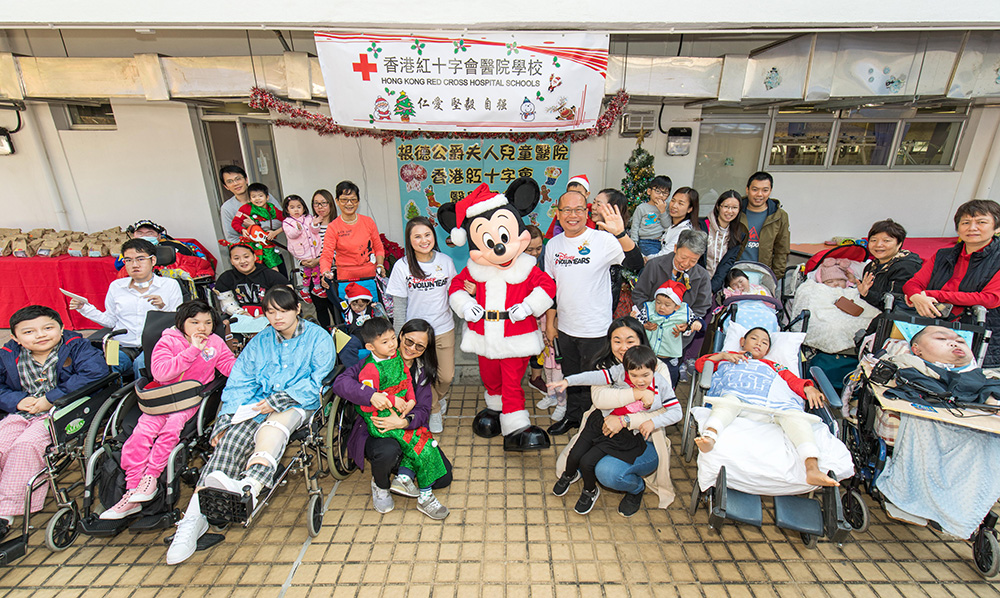 香港迪士尼與香港紅十字會醫院學校合作,連續第四年於聖誕到醫院探訪,早前有20名義工入院探訪,米奇老鼠到場與病童齊玩遊戲。過去一年,迪士尼義工已參與逾30項病童相關義工服務。