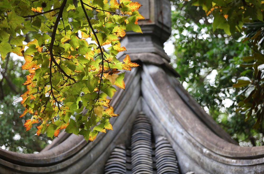 圖:出發追影紅葉之前,不妨留在原處,用另一角度記錄大自然變化。圖為九龍城寨公園紅葉徑,古亭連枯葉,添幾分禪意/大公報記者蔡文豪攝