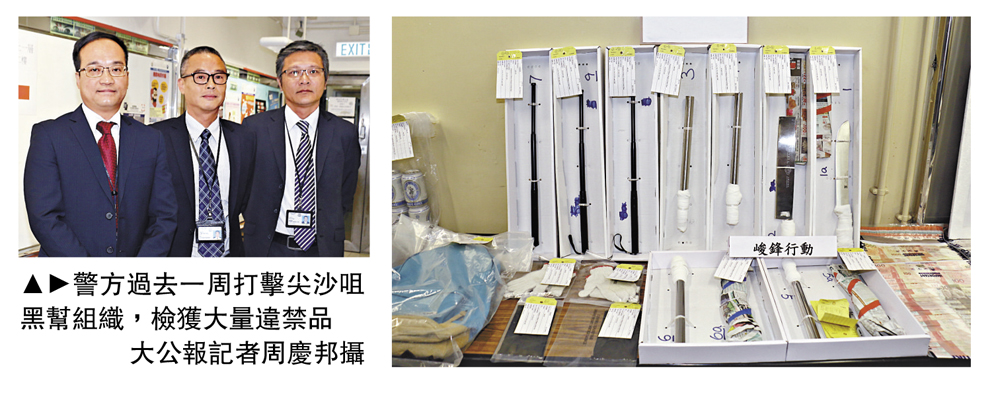 圖:警方過去一周打擊尖沙咀黑幫組織,檢獲大量違禁品/大公報記者周慶邦攝