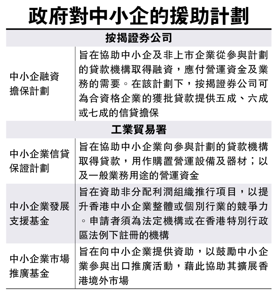 何經理解釋道,外圍經濟環境波動,因此在放款上會格外留神,但企業若能提供齊全的財務和業務資料,會對申請有幫助,強調「唔會因客戶嘅財務狀況一時受經濟周期影響而落雨收遮。」他又指出,中小企可多考慮政府提供的融資協助計劃,如「中小企融資擔保計劃」。