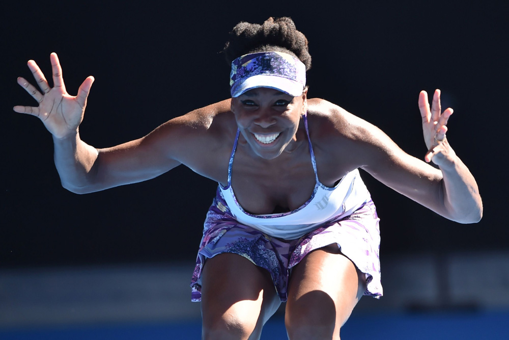 圖:「大威」維納絲威廉斯在四強賽取勝後興奮得做出趣致的動作 法新社