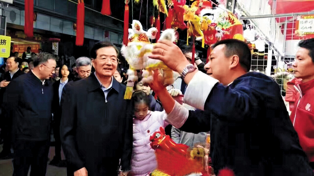 【大公報訊】記者黃寶儀廣州報道:「行花街」是廣州市民過年的必備節目,26日,在享有「百年花市」美譽的西湖花市,廣州市民一不留神就偶遇了中共中央前總書記胡錦濤一家。看到胡錦濤像普通百姓家的長輩,與家人一起賞花,一起欣賞傳統嶺南民間工藝,大家都倍感親切。