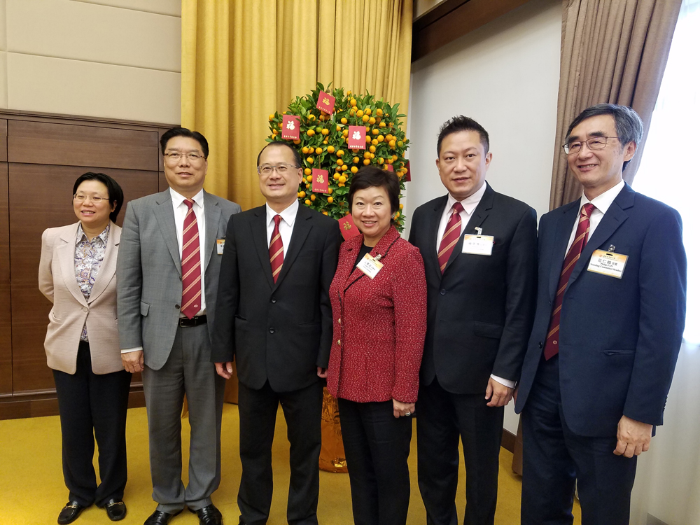 圖:香港中華總商會新春團拜,左起:中總選任會董梁香盈、副會長李應生、會長蔡冠深、副會長王惠貞、副會長楊華勇同常務會董范仁鶴都有出席\大公報記者李淇攝