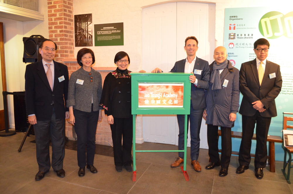 民政事務局副局長許曉暉、香港電車商業及企業事務經理Antoine Sambin、饒宗頤文化館管理委員會副主席黃景強、饒宗頤文化館總幹事黎業榮、贊助商Pacific Coffee Co. Ltd.業務發展部總監李圳鎧及策展人Irene Flanhardt作為主禮嘉賓出席「叮叮去九龍」展覽開幕禮。