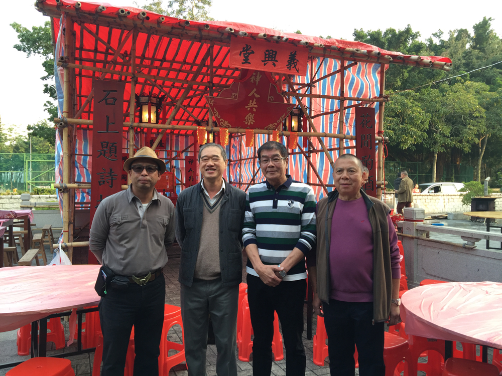 圖左起:大埔頭村居民代表鄧振強、興華叔、新界區區議員鄧銘泰、原居民代表鄧華於燈棚前合影   大公報記者劉榕欣攝