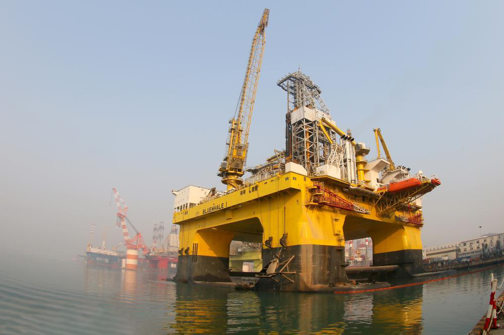 圖:全球最先進超深水雙鑽塔半潛式鑽井平台「藍鯨1號」/網絡圖片