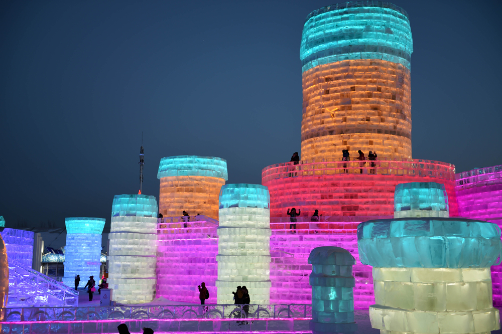 圖:2月24日,遊客在參觀哈爾濱冰雪大世界冰雕 新華社