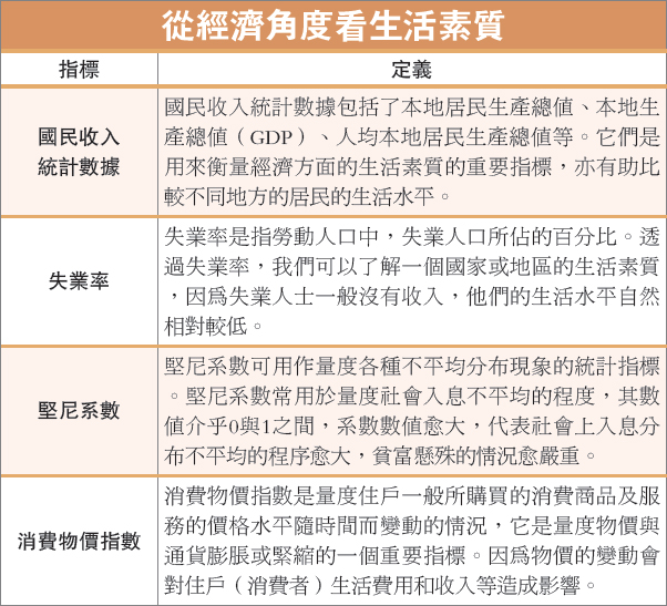從經濟角度衡量一個地區的生活素質,是過往較常用的指標。但近年,不少研究發現,從經濟角度衡量生活素質實有其局限之處。
