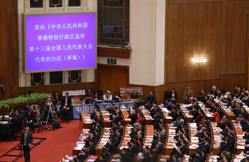 一連十三日的十二屆全國人大五次會議昨日早上閉幕,以2813票贊成、13票反對、9票棄權,得票率99.1%,通過香港特別行政區選舉第十三屆全國人大代表辦法,同時以約99%得票率,通過澳門特別行政區相關辦法。