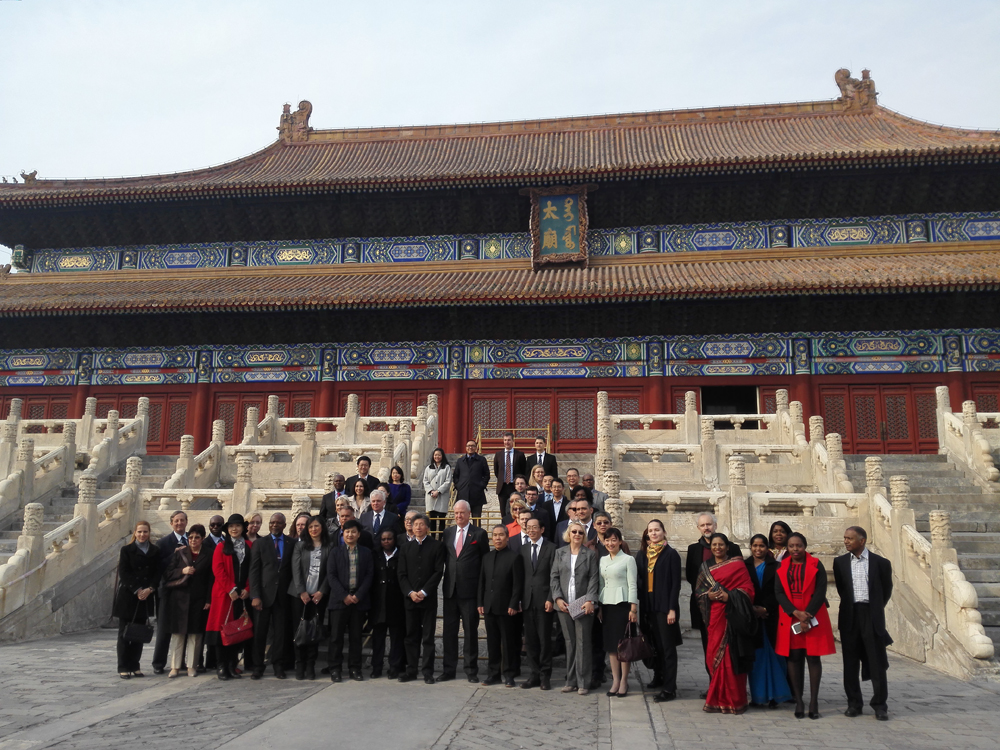 近日,來自「一帶一路」沿線30多國的駐華使節、近60位高級外交官一行走進北京太廟藝術館,在600餘年歷史的中國皇家殿堂中,參觀「文明的回響」系列展覽第二部─「中華匠作」藝術展,一起傾聽文明的回響,欣賞中華匠作的古代輝煌與當代創作。 文/圖:大公報記者朱燁