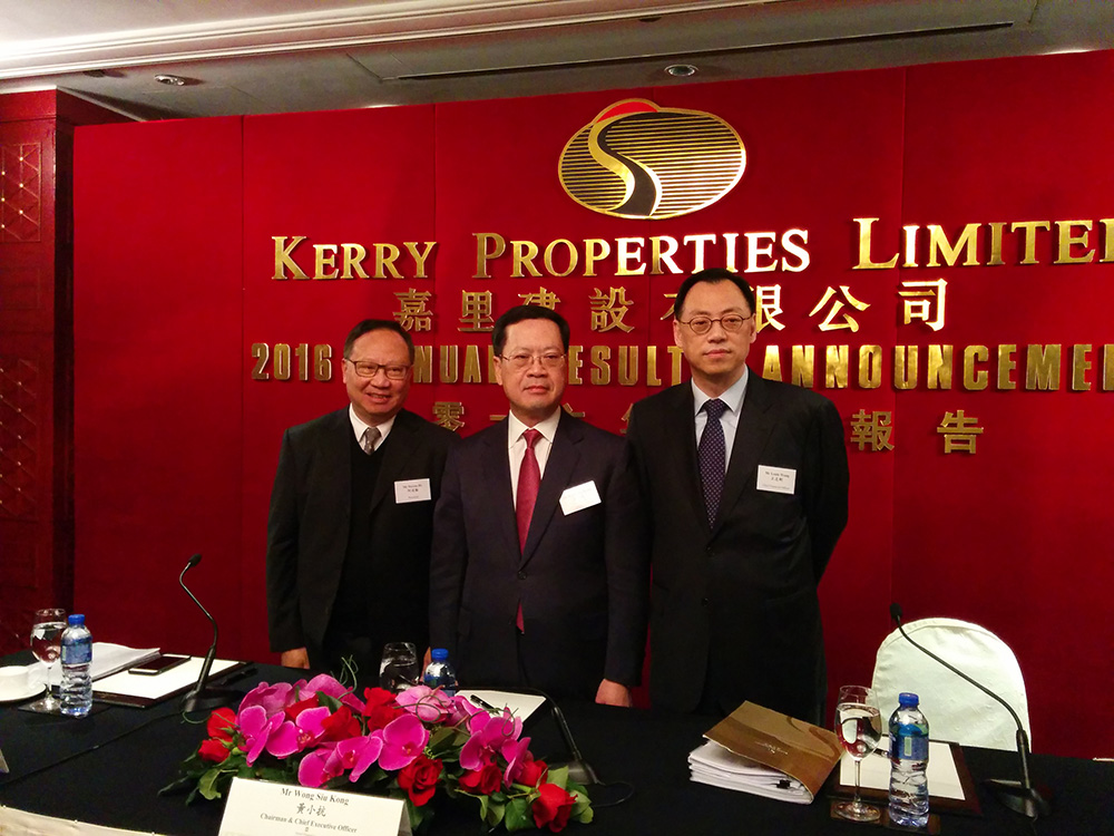圖左起為嘉里總裁何述勤、主席黃小抗及首席財務主管王志剛/大公報記者趙建強攝