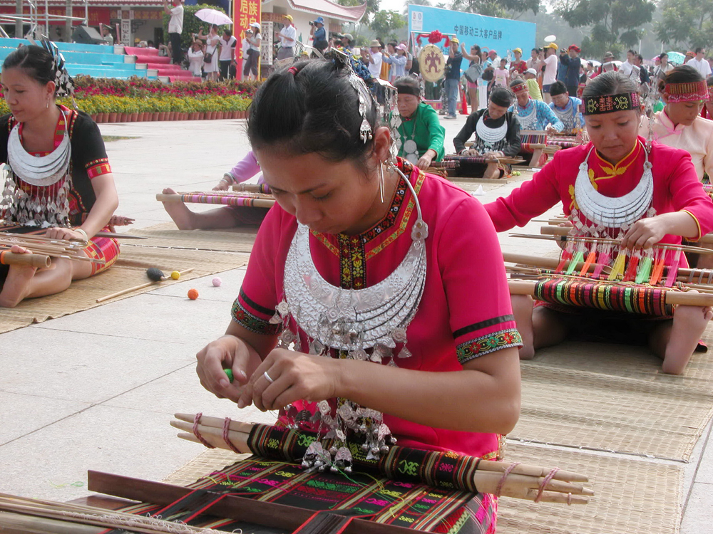 圖:黎族居民正在織黎錦