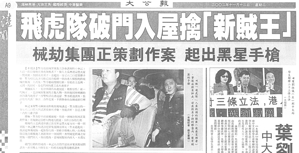 圖:本報有關當年飛虎隊在土瓜灣擒械劫集團的報道/資料圖片