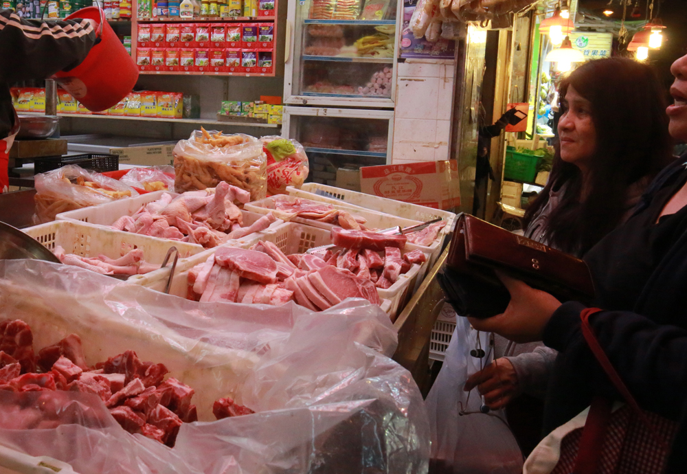 圖:有凍肉店繼續售賣豬扒及雞翼等凍肉,但未有標示來源 大公報記者麥潤田攝