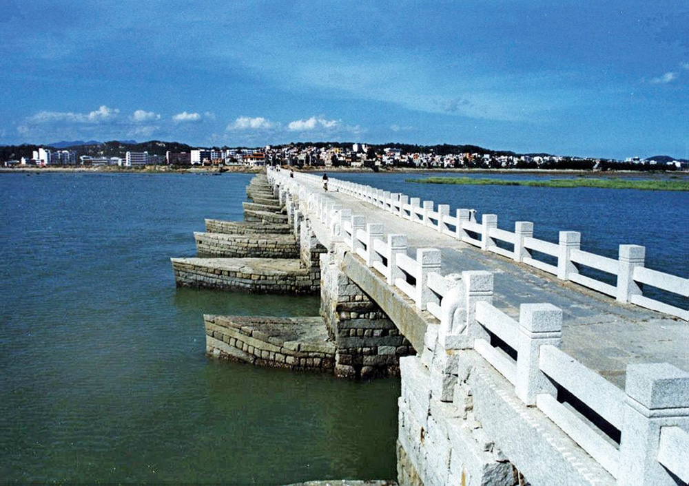 車子跟着導航,順海濱北行,一路領略閩南沿海建築的別樣風情,時間不知不覺在車輪間滾過,一道跨海飛樑霍地闖入眼簾。彩練行空,玉虹青霄,長虹卧波……本是慕名而來,思緒卻被這第一眼的印象絆住了,一時找不到一個合適的詞。南宋知泉州府王十朋有題詩一首,「北望中原萬里遙,南來喜見洛陽橋。人行跨海金鰲背,亭壓空江玉虹腰」,此時倒是豁然開悟。是啊!古橋,向來入得了詩詞。無論是「跨海為橋布石牢,那知直下壓靈鰲。基連島嶼規模壯,勢截淵潭氣象豪」的寫實之句,還是「一望五里排琨瑤,行人不憂滄海潮。憚憧往來乘仙飆,蔡公作成去還朝」的頌蔡公之詞,都將千百年來惠民便民的津樑,載上了詩人的情懷。