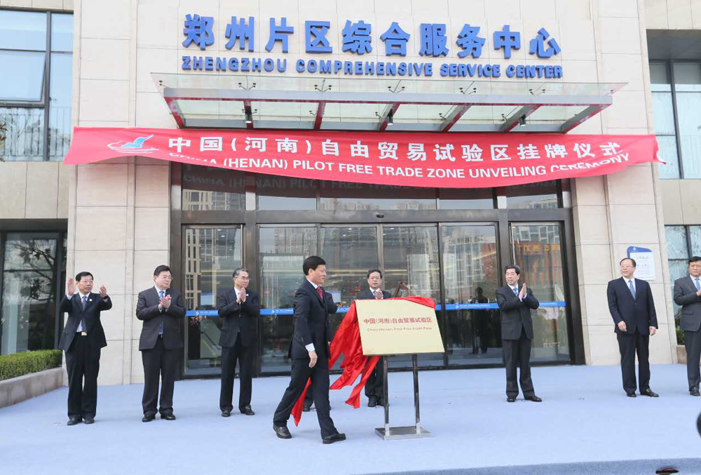 當日上午,河南省委書記、省人大常委會主任謝伏瞻為河南自貿試驗區揭牌,並與省長陳潤兒、省政協主席葉冬松共同為鄭州片區、開封片區、洛陽片區授牌,與會有關省領導共同為首批入區企業代表頒發營業證照,並察看自貿試驗區鄭州片區綜合服務中心。作為內地首個以交通物流為特色的自貿區,河南自貿試驗區將建成投資貿易便利、高端產業集聚、交通物流通達的自貿園區,引領內陸經濟轉型發展,推動構建全方位對外開放新格局。同日,中國(湖北)自由貿易試驗區正式揭牌,儀式由中共湖北省委書記蔣超良主持。湖北自貿區由武漢、襄陽、宜昌三片區組成,將以制度創新為核心,在政府職能轉變、投資領域改革、貿易轉型升級、金融開放創新、創新驅動發展、產業轉型升級等方面進行體制機制創新。