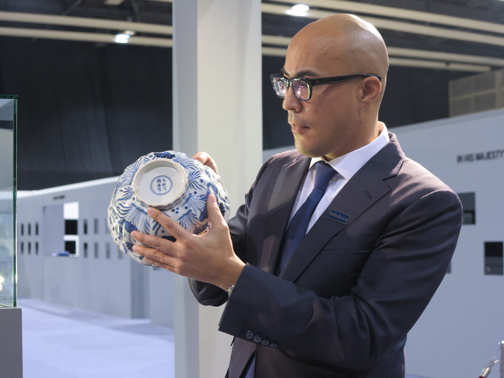 拍賣會後蘇富比亦舉行記者會,蘇富比亞洲區副主席、中國藝術品部國際主管及主席仇國仕(Nicolas Chow)等專家出席作介紹。仇國仕以及蘇富比專家認為此宣德青花盌可稱為「絕世僅有」。「目前市場上很難找到可以與這個碗媲美的,無論從畫意還是發色它都是同類中最好的。」仇國仕介紹,它是十棱菱口碗,十棱很容易燒變形,這增加了它的燒造難度,然而這件作品器型很正,同時畫意自然,色澤也艷麗,所以是宣德碗當中目前市場可見的最頂級的一個碗。