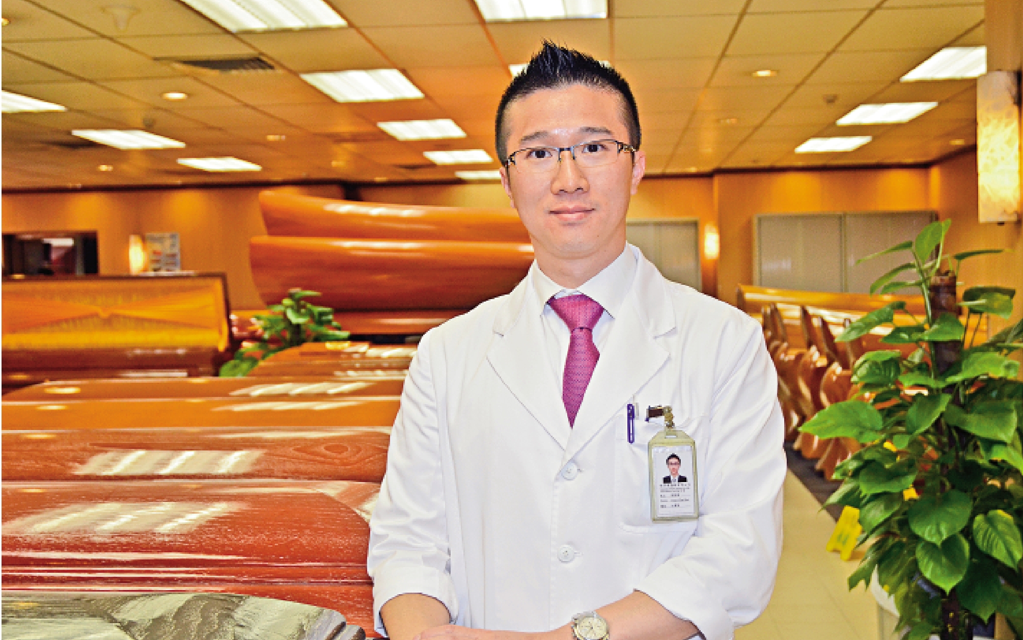 □人過世後,直至出殯之日,可能需要等待一段日子,遺體能夠維持原有狀態,有賴鮮為人知的防腐處理程序。全港現時只有三名正式取得國際認可資格的「遺體防腐師」,陳展禧是其中一人。他工作時穿上白袍,外形猶如醫生,直言外界對這職業誤解多,甚至曾將遺體防腐等同製作木乃伊。每天接觸死亡,陳展禧感慨生命短暫,人生最重要是珍惜生命,活好當下。