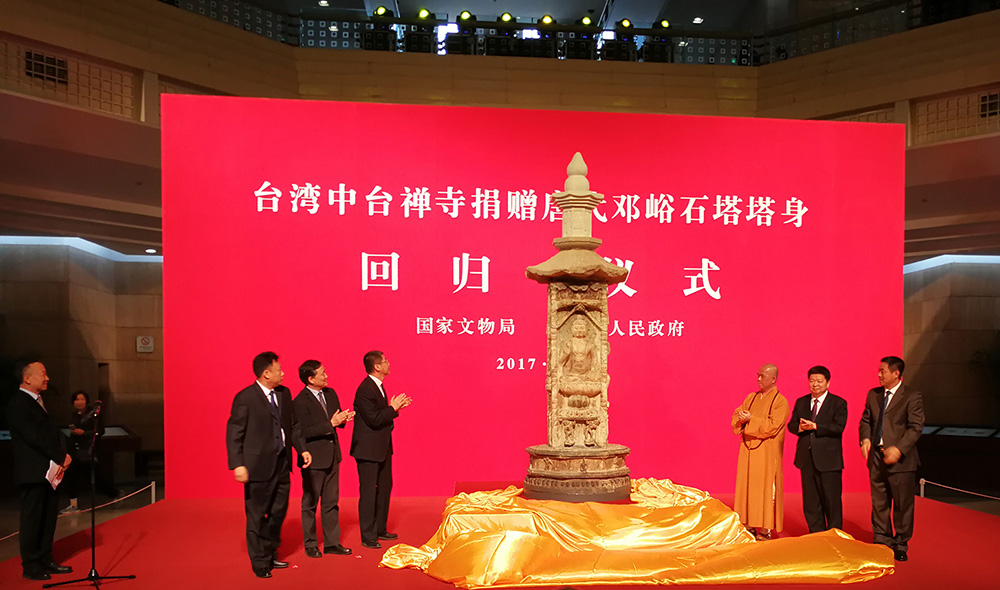 台灣中台禪寺住持見燈大和尚在致辭中說,「今日石塔回歸落腳山西博物院,圓滿開山祖師惟覺安公老和尚推動兩岸宗教文化、藝術交流的遺願,讓唐代四方佛塔回到山西,期盼兩岸佛緣,盛世重光,無盡法燈,普照大千。」